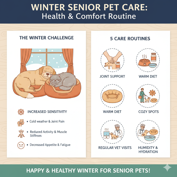 겨울은 나이 든 반려동물에게 특히 힘든 계절이에요.