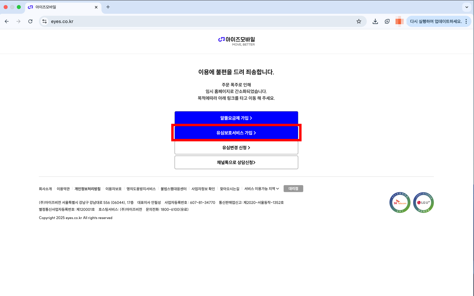 자체적인 고객 보호 시스템을 운영하고 있으므로, 유심 이상 징후나 해킹 의심이 발생한 경우